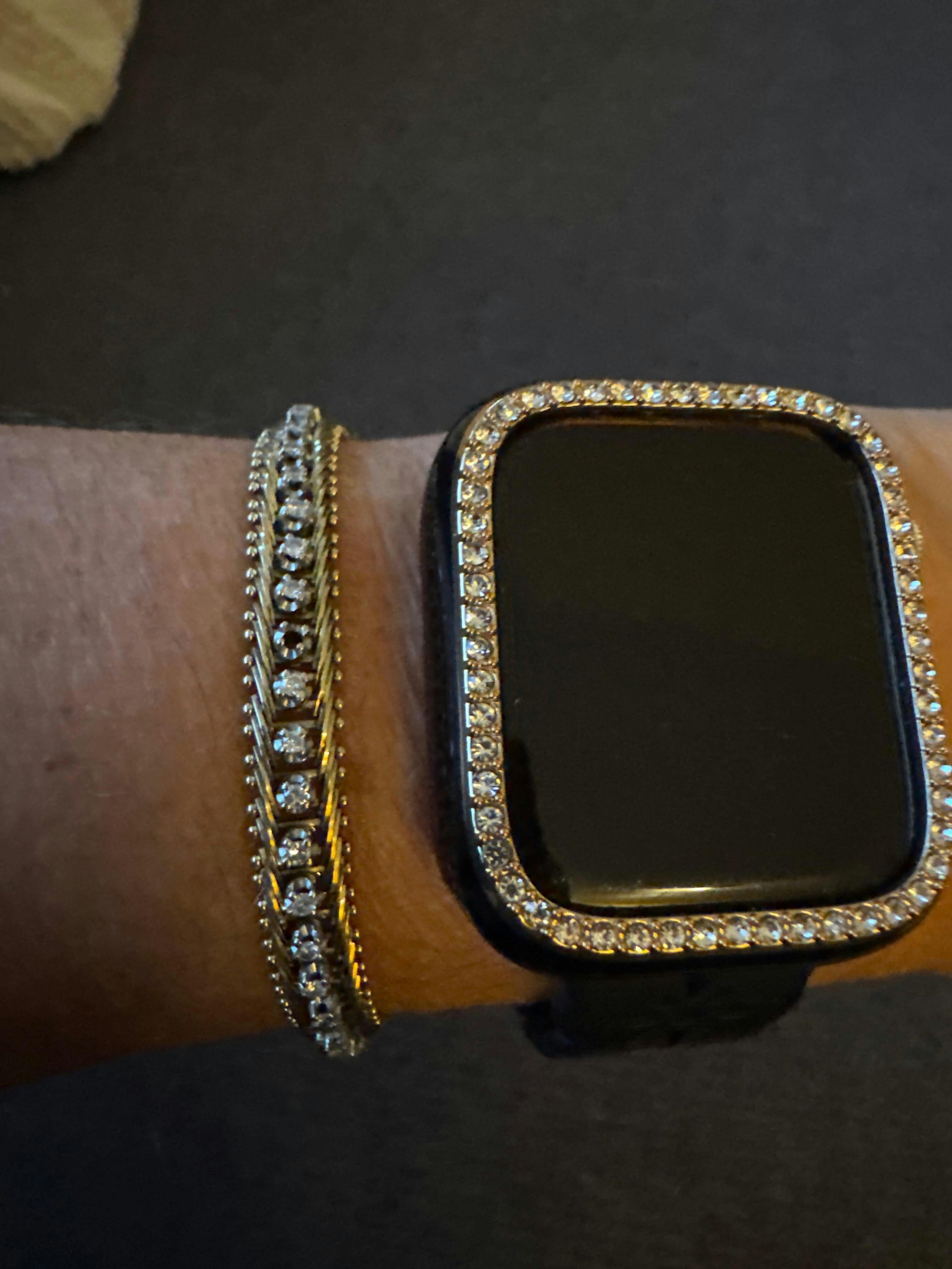 The Retro Apple Watch Cover elevates and protects your Apple Watch with style. It adds a playful mix of color and sprinkles to match your favorite strap. The Retro Cover takes sparkling rhinestones to the next level with a sophisticated retro touch.