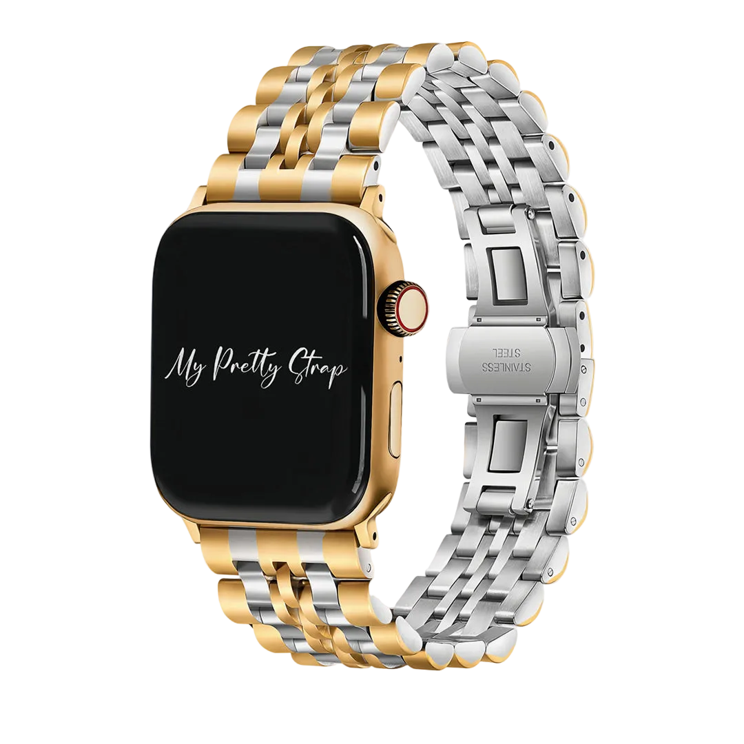 Step up your style game with the Holy Chic Apple Watch Strap – a true showstopper. This gold-plated stainless steel strap doesn’t just complement your Apple Watch; it transforms it. With its luxe design and eye-catching shine, it’s more than just a strap—it’s a statement. Perfect for any occasion, this strap adds a touch of elegance and edge, ensuring you stand out with every gesture. Make your Apple Watch as chic as you are and let your wrist do the talking.