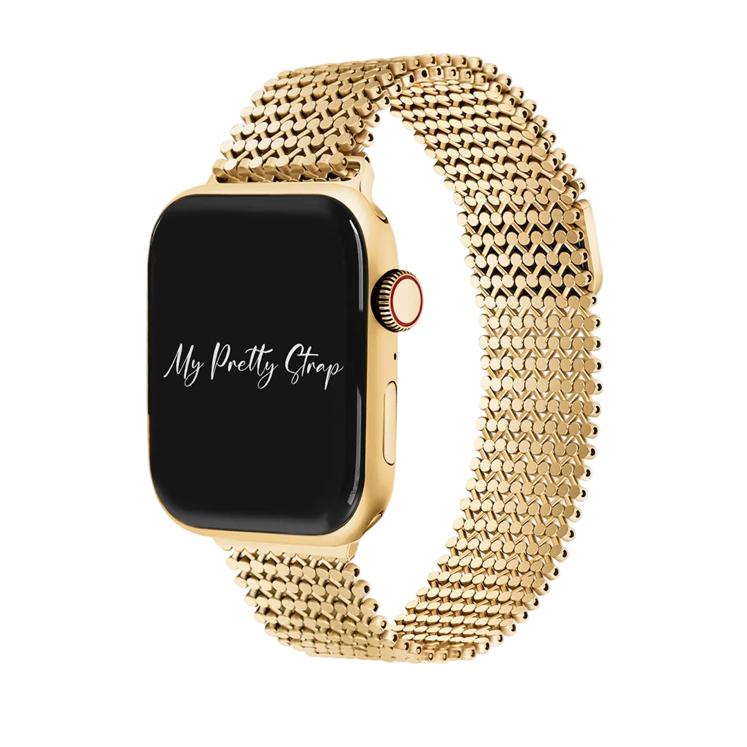 Introducing the Jasmine Apple Watch Strap: a symbol of sophistication and versatility for the sophisticated woman. This exquisite piece transcends the ordinary with its unique resizable design, equipped with an innovative iman mechanism that allows for effortless customization to fit your wrist perfectly, ensuring both comfort and elegance.