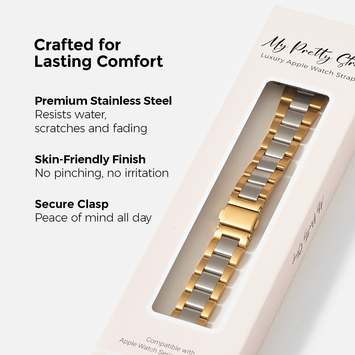 Queen Vogue the quintessential luxury Apple Watch strap for women, marries timeless elegance with unparalleled ease. This exquisite strap is a masterpiece of design, blending the legacy of classic watch aesthetics with the cutting-edge technology of your Apple Watch.