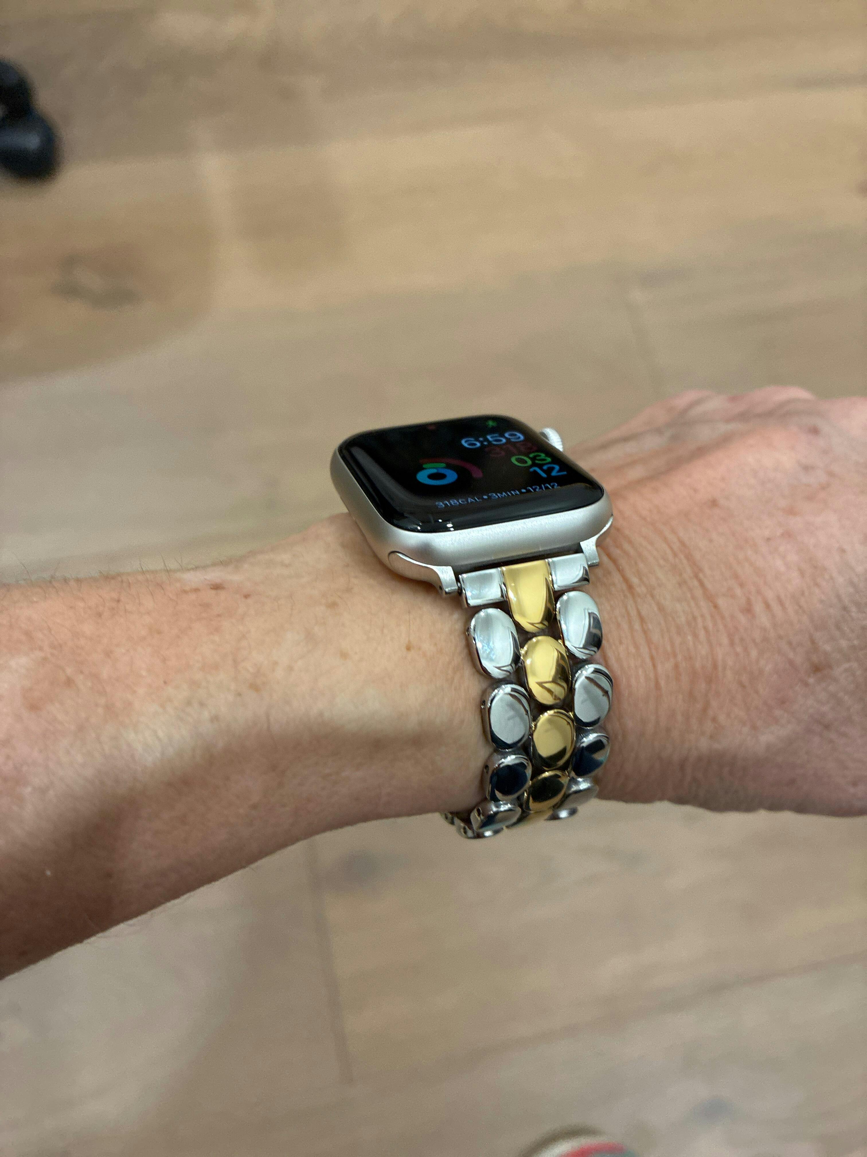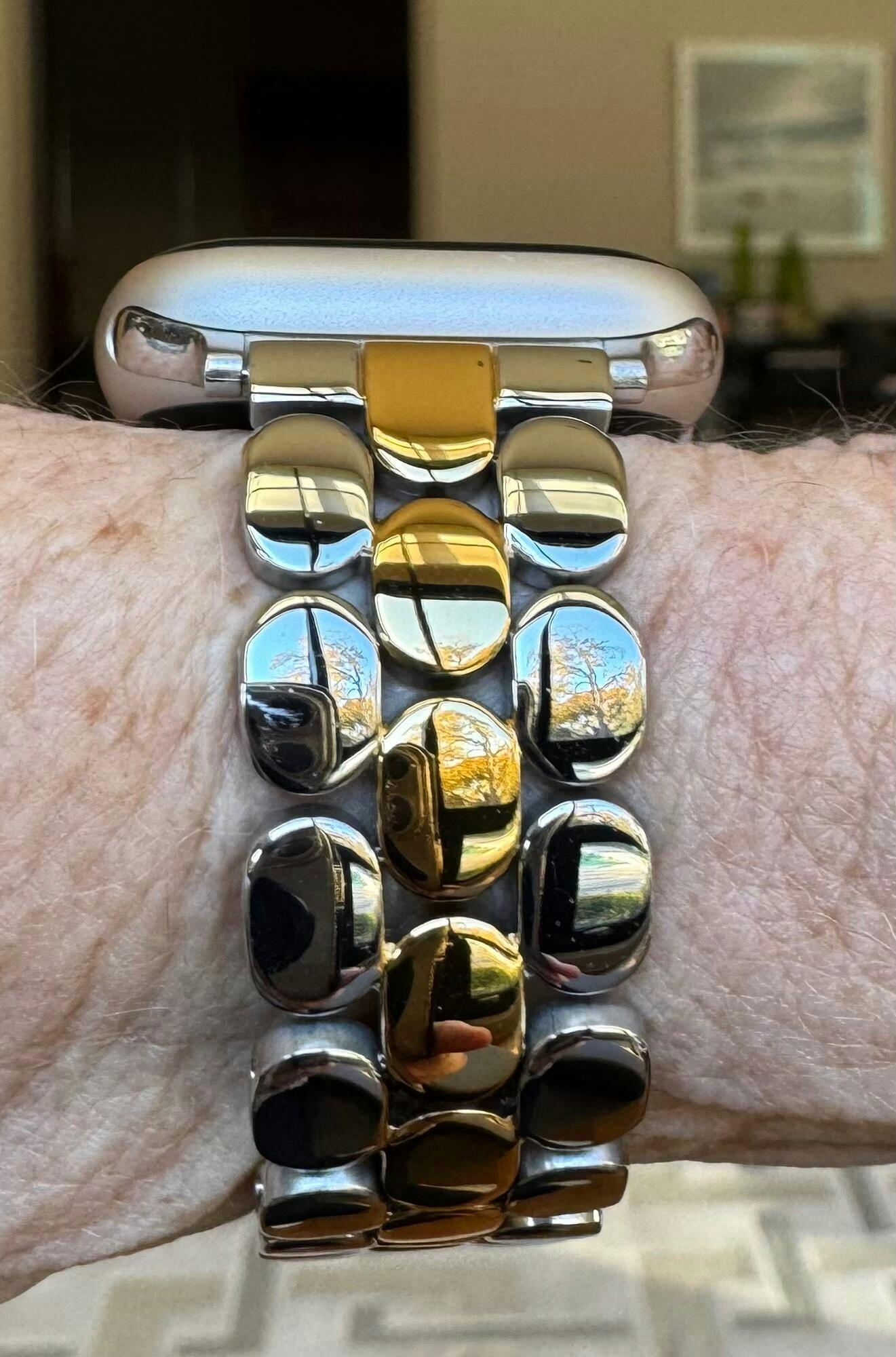 Crafted from premium stainless steel and twisted into elegant woven link chains, this watch band elevates your Apple Watch with its luxurious look & feel. Each watch band comes with its own metal adapter, designed to fit your Apple Watch seamlessly straight from the box.