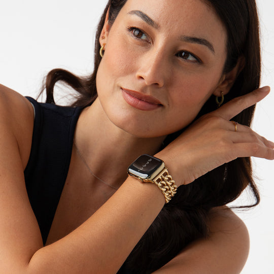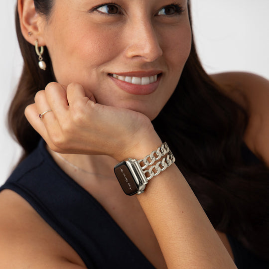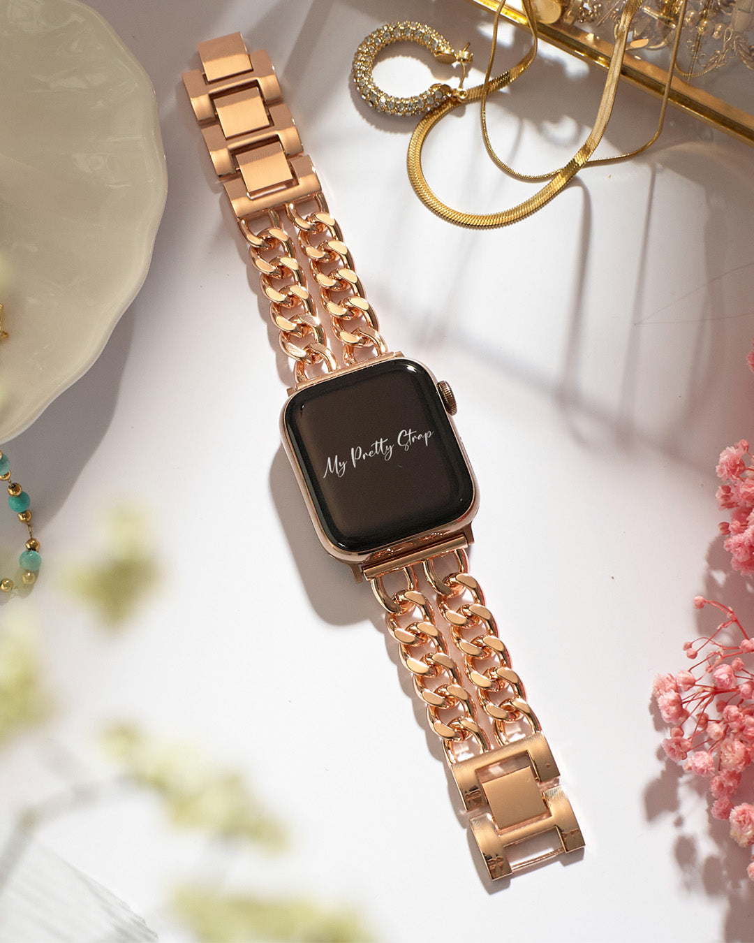 Crafted from premium stainless steel and twisted into elegant woven link chains, this watch band elevates your Apple Watch with its luxurious look & feel. Each watch band comes with its own metal adapter, designed to fit your Apple Watch seamlessly straight from the box.