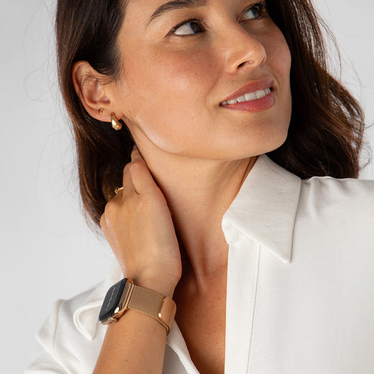 Crafted from premium stainless steel and twisted into elegant woven link chains, this watch band elevates your Apple Watch with its luxurious look & feel. Each watch band was designed to fit your Apple Watch seamlessly straight from the box.