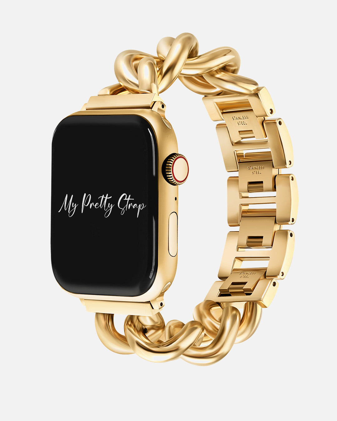 Straps crafted from premium stainless steel and twisted into elegant woven link chains