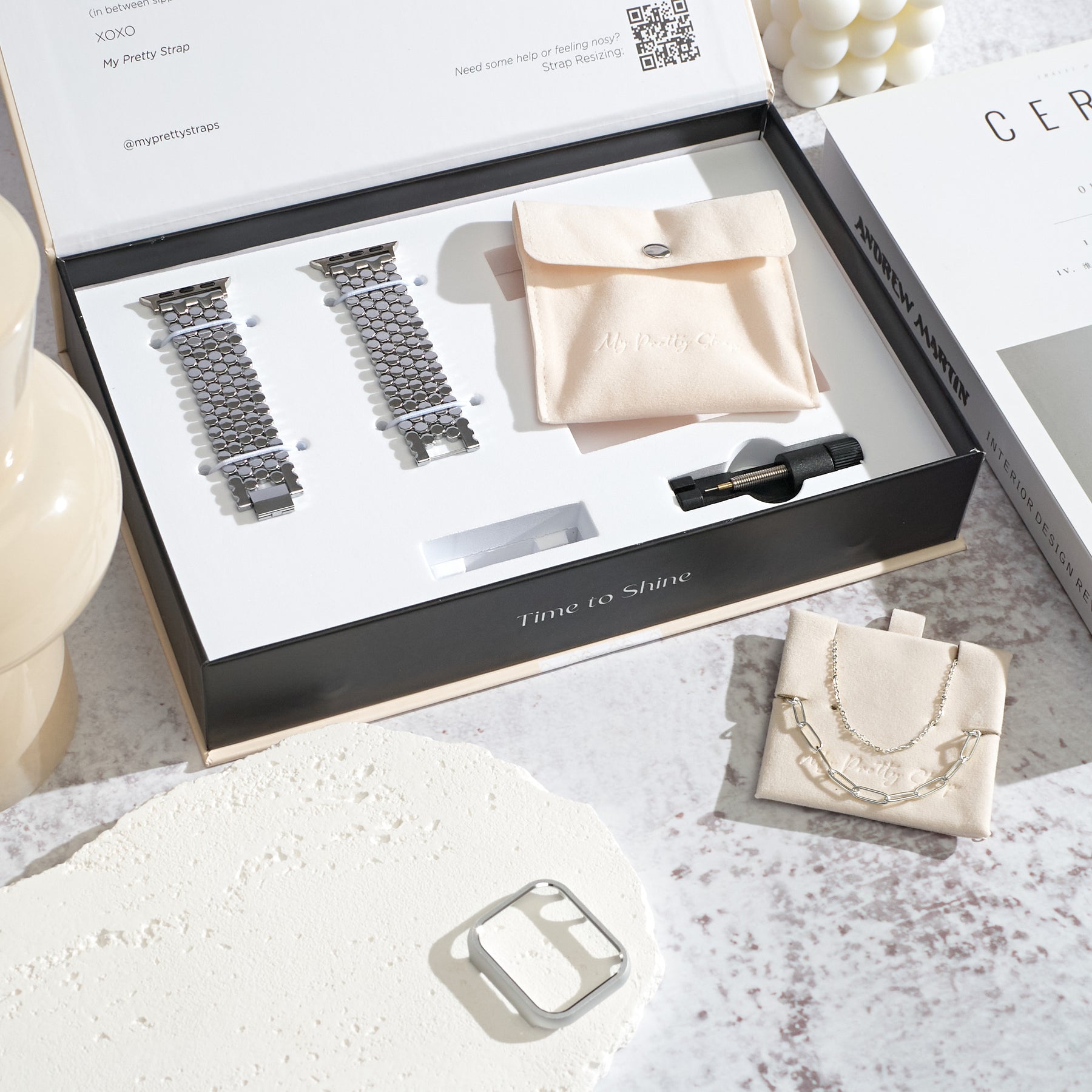 Honeycomb Gift Set comes with an elegance of materials and pieces, choose thoroughly to have the perfect match for your wrist.