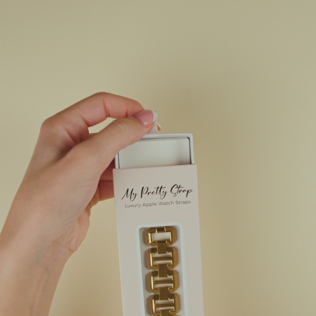 Introducing the Iris Apple Watch Strap: where luxury meets functionality in a radiant embrace. This 18k gold-plated, stainless steel, offering both supreme elegance and unparalleled ease.
