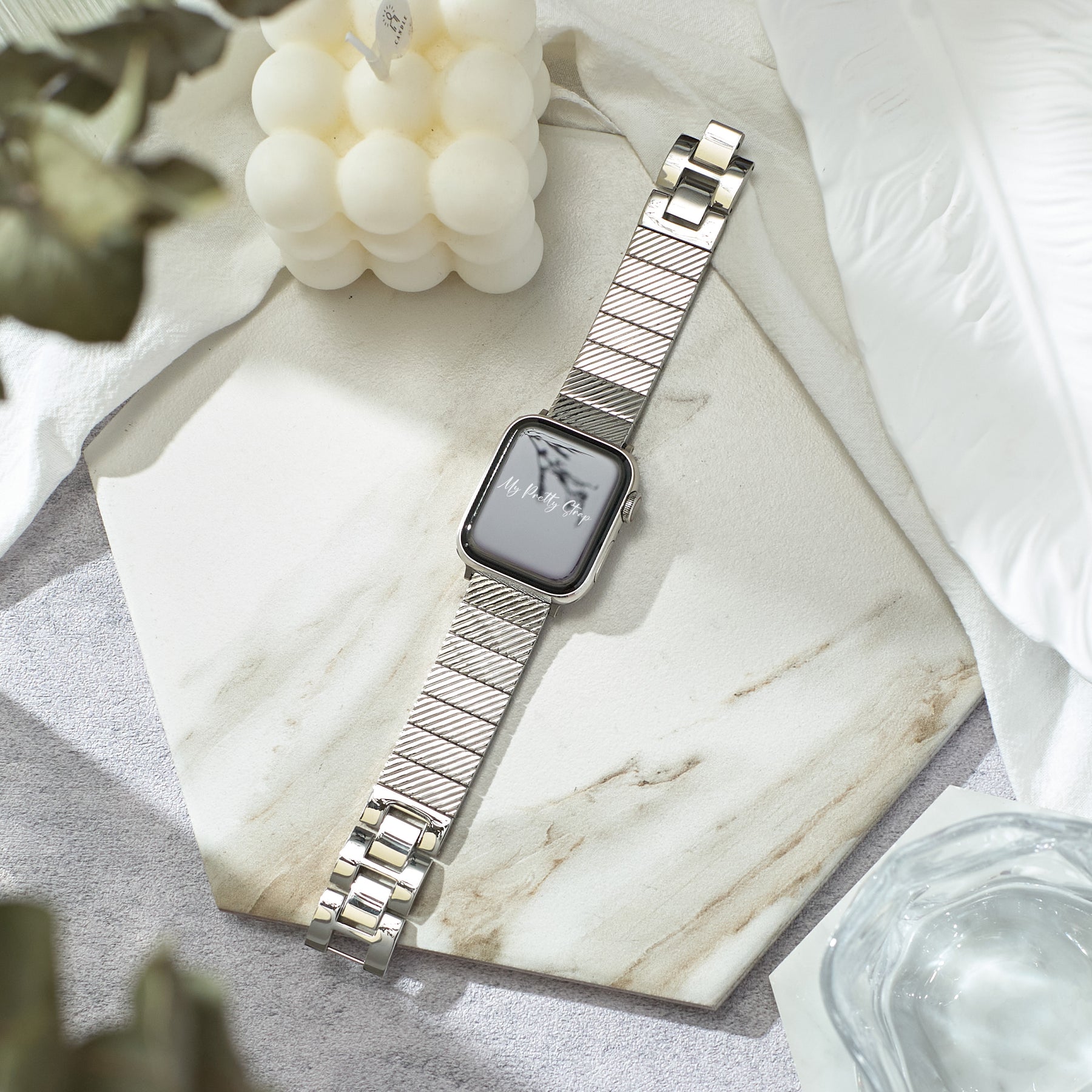 Crafted from premium stainless steel and twisted into elegant woven link chains, this watch band elevates your Apple Watch with its luxurious look & feel. Each watch band comes with its own metal adapter, designed to fit your Apple Watch seamlessly straight from the box.