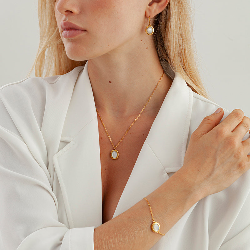 The Diva Set includes earrings, a bracelet and necklace. All meticulously crafted with twisting strands for a unique and textured look. The addition of 18K Gold Plating adds a touch of luxury, elevating the set to new heights of glamour. The stainless steel core ensures durability, water-resistance and allergy-friendliness.