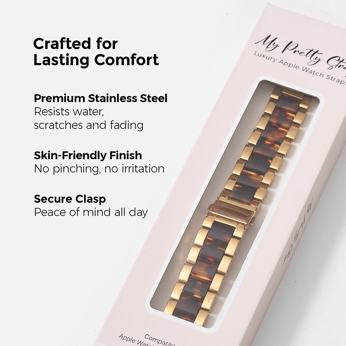 Each watch band comes with its metal adapter, designed to fit your Apple Watch seamlessly straight from the box.