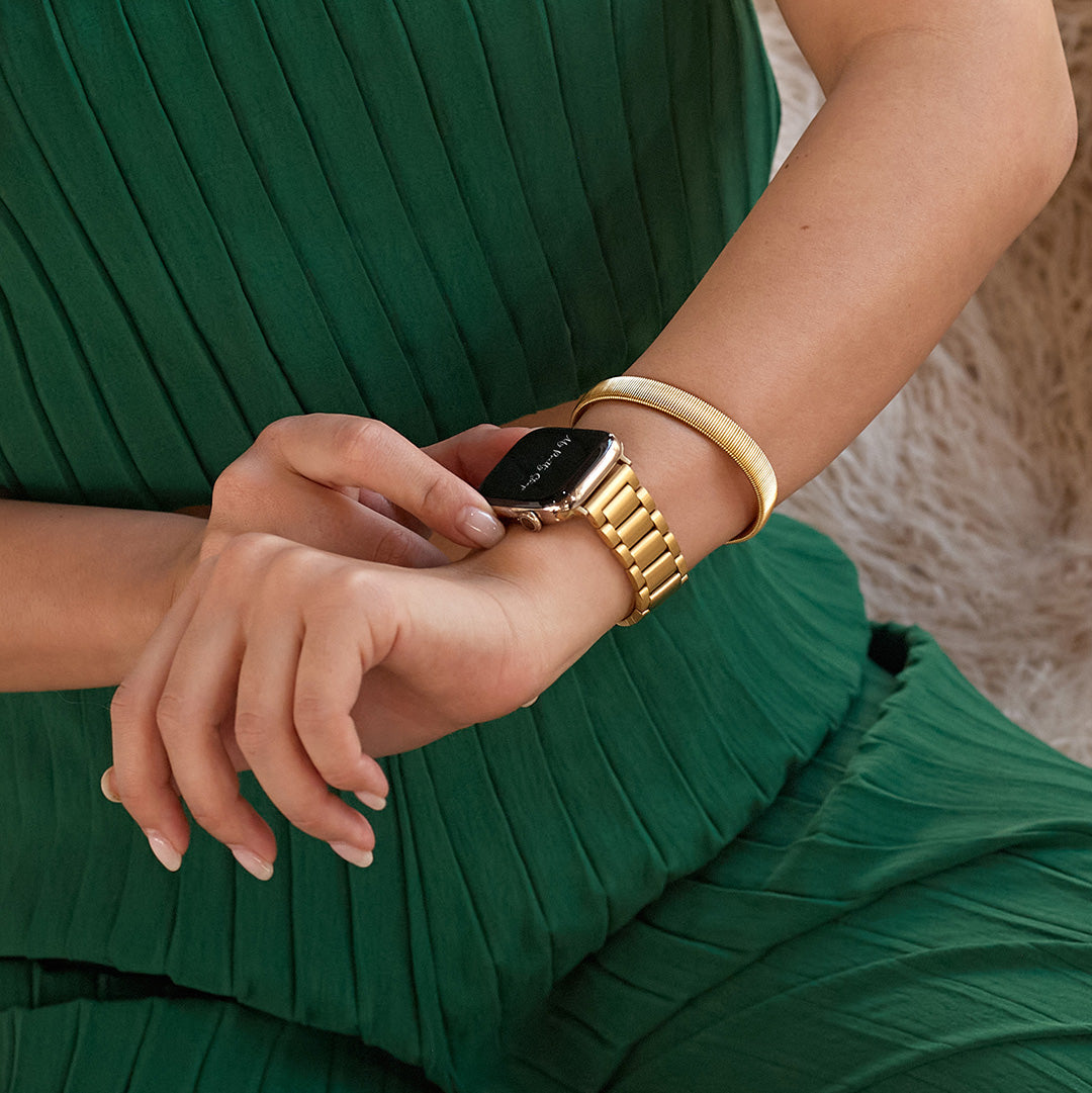 Crafted from premium stainless steel and twisted into elegant woven link chains, this watch band elevates your Apple Watch with its luxurious look & feel. Each watch band comes with its own metal adapter, designed to fit your Apple Watch seamlessly straight from the box.